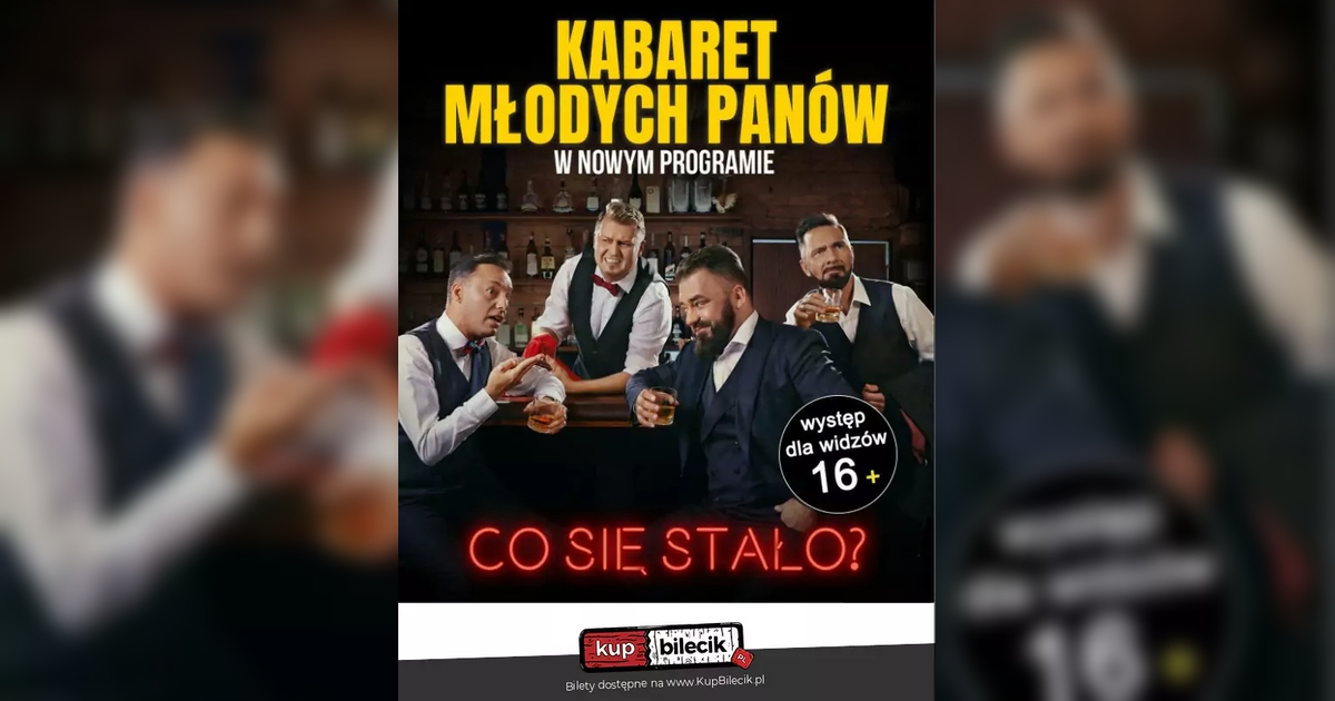Najnowszy program Kabaretu Młodych Panów - "Co się stało?" jest sceniczną i oczywiście ironiczną odpowiedzią na pytanie, na które większość z nas odpowiada - nic. Czasami lekko rozwijamy odpowiedź, która automatycznie przechodzi w pytanie - nic, dlaczego pytasz?